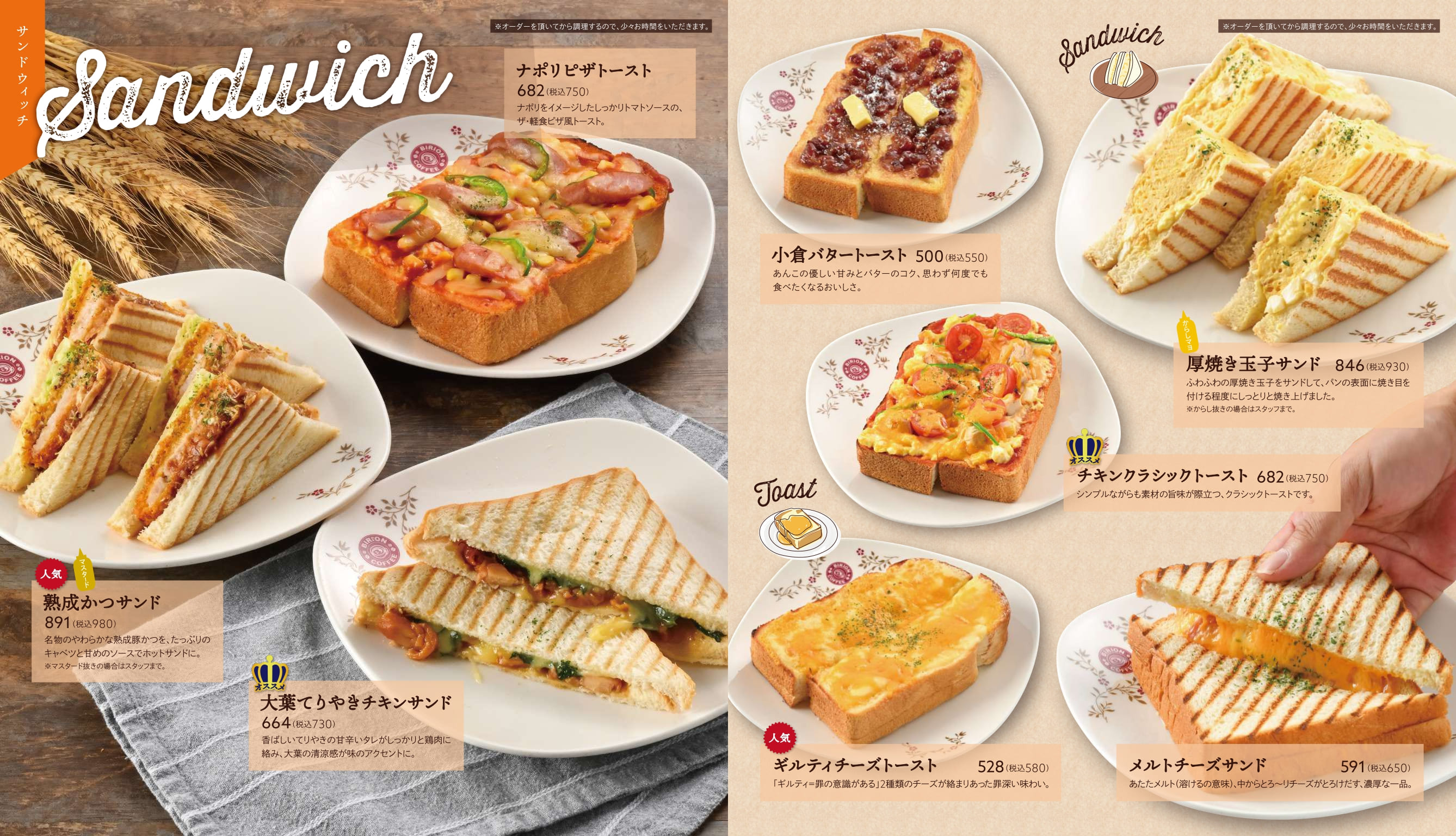 ビリオン珈琲のテイクアウトメニュー