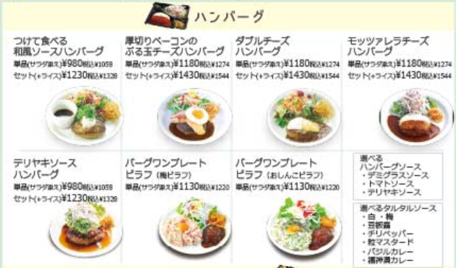 | ハンバーグワンプレートピラフ(おしんこピラフ) | 単品(サラダ添え)1,220円 |