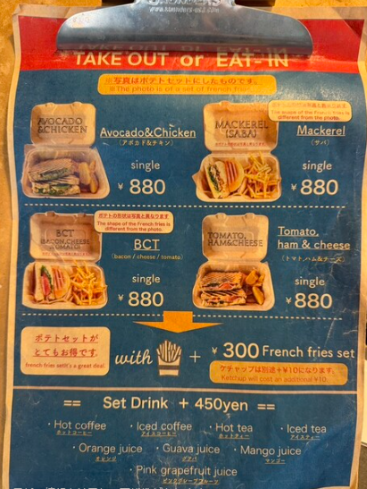 店内で食べるのもいいですが、テイクアウトメニューも充実しています。