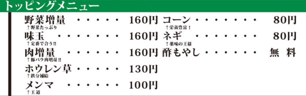 トッピングメニューはどれもリーズナブルで種類も豊富です♪