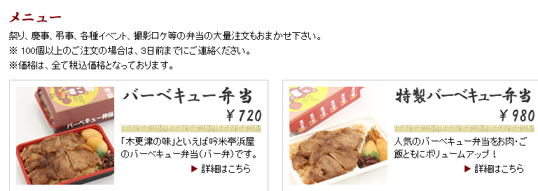 吟米亭浜屋のテイクアウトメニュー