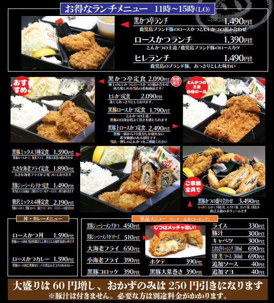 黒かつ亭鹿児島県産黒豚とんかつ専門店の人気店です。