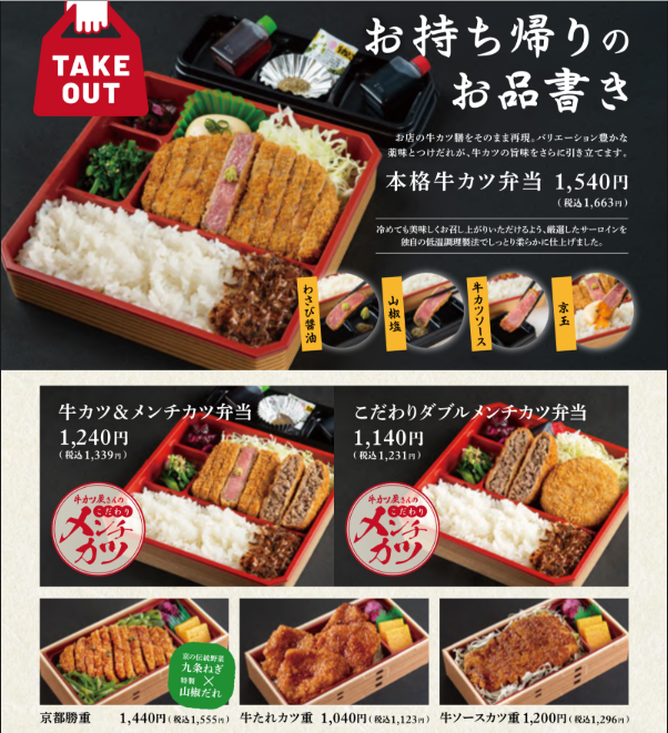 牛カツ京都勝牛のテイクアウトメニューをお届けします。