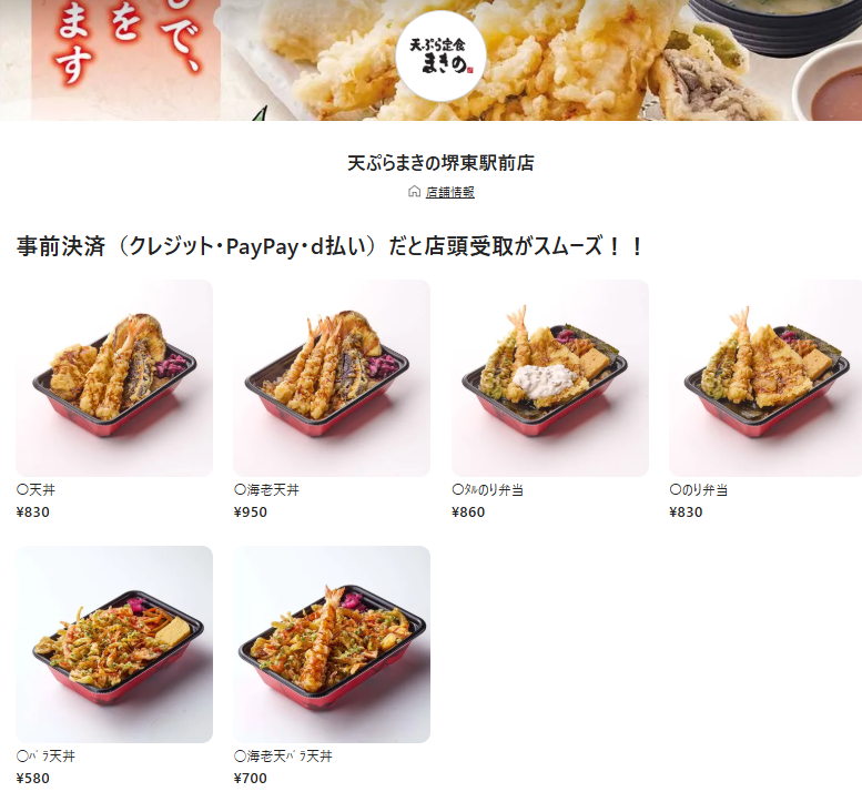 天ぷら定食まきののテイクアウト対応店舗