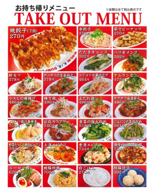 今はテイクアウト提供のみ営業で4/30まで画像のメニューが半額