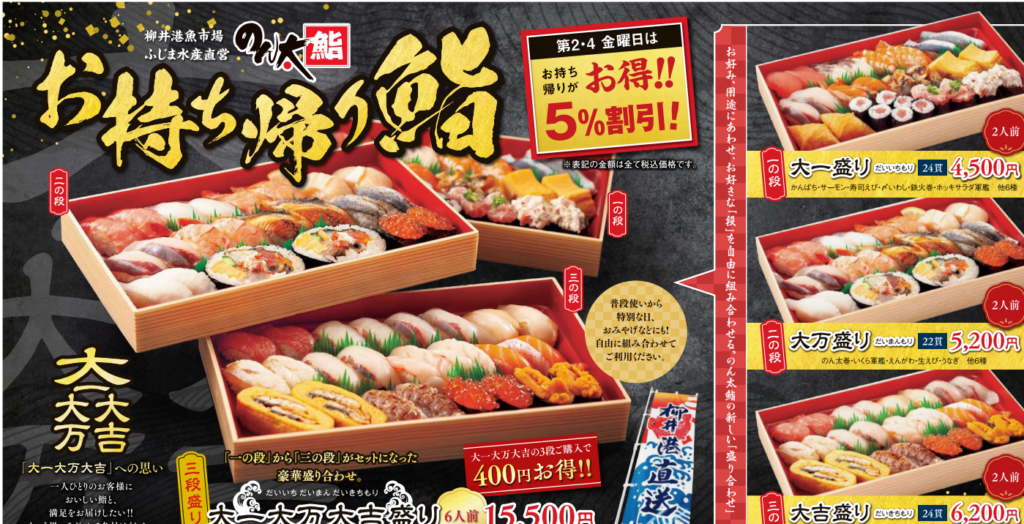 今回はのん太鮨のテイクアウトメニューや予約注文方法について紹介していきます。