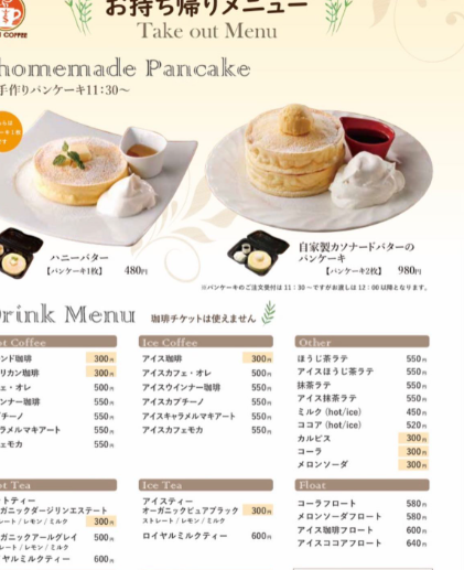| アイスコーヒー(冷) | 300円 |