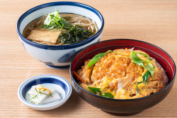 定番の大人気メニューのかつ丼や創業以来の人気丼ぶり海老天丼は、お蕎麦とセットで是非お召し上がりください♪