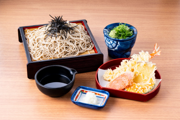 天ざるそばは、のどごしのよいざるそばと、揚げたての天ぷらのセットはそば吉不動の人気メニューです♪