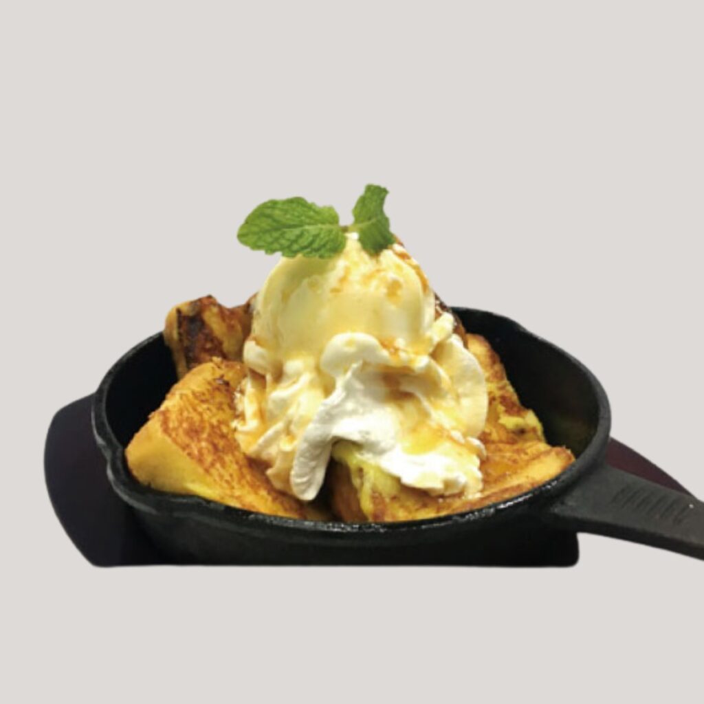 ふわふわでのフレンチトーストにたっぷり乗った生クリームが愛称抜群の鉄板フレンチトーストは、甘い物好きにはたまりません♪