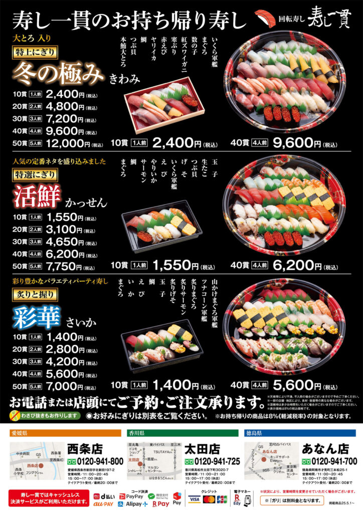 今回は寿し一貫のテイクアウトメニューや予約注文方法について紹介していきます。