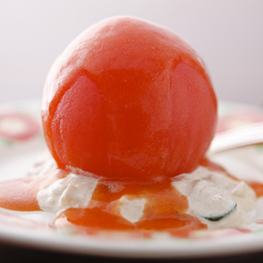 トマトサラダは、一つ一つ丁寧に湯剥きしたトマトをよく冷やし、ツナサラダの上にのせ、朝作りのドレッシングをかけた東洋亭の人気メニューです♪
