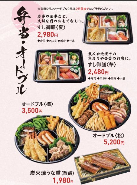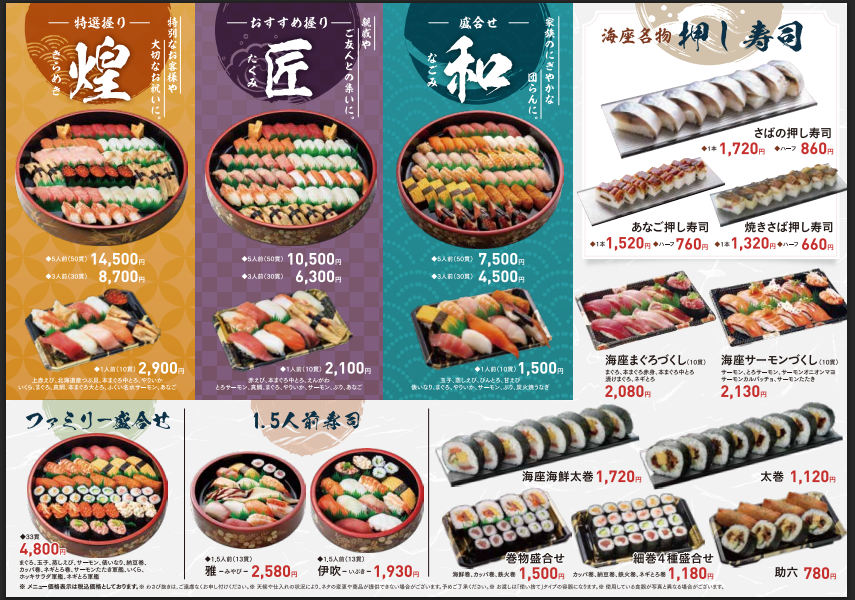 すし処海座のテイクアウトメニューをお届けします。
