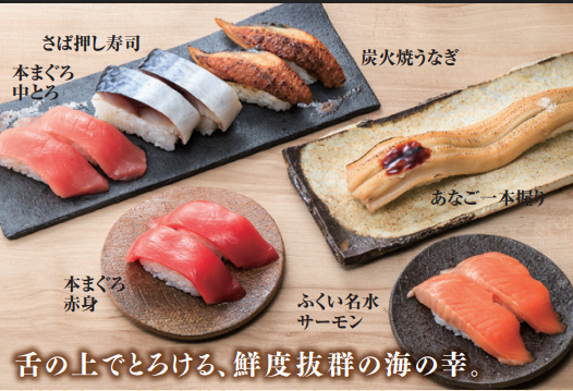 人気の本まぐろ赤身はもちろん、ふくい名水サーモンや上赤えびは定番人気メニュー☆