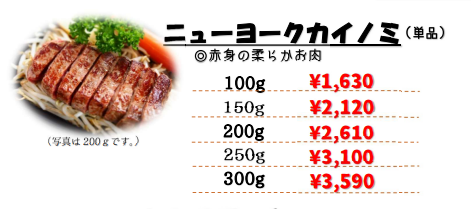 | ニューヨークステーキ&ハンバーグ各100g | 2,090円 |