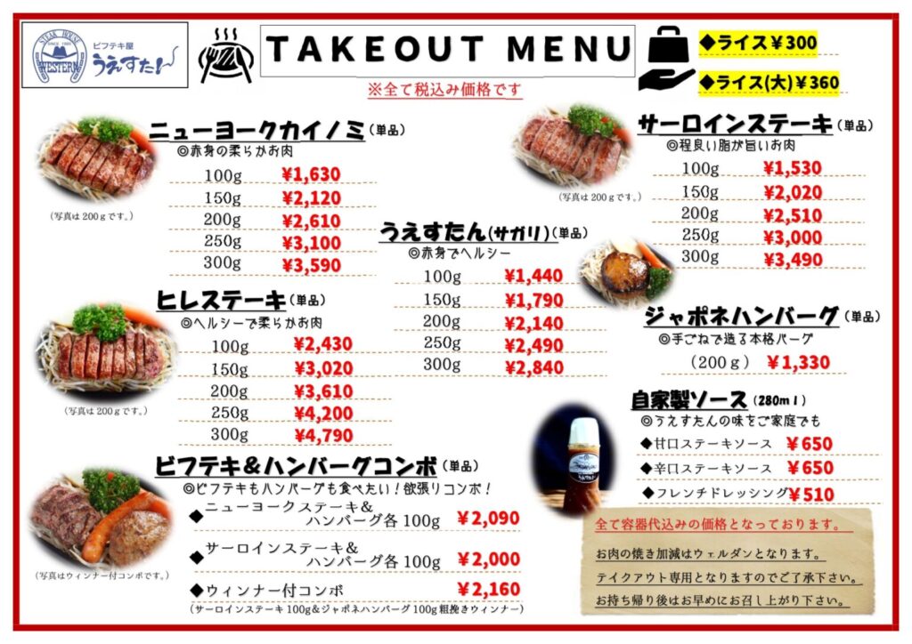 ビフテキ屋うえすたんのテイクアウトメニュー
