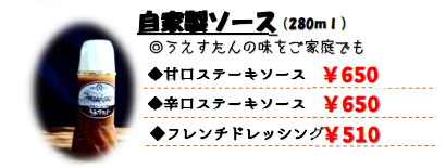 うえすたん人気のステーキソースをご自宅でもお召し上がりください♪