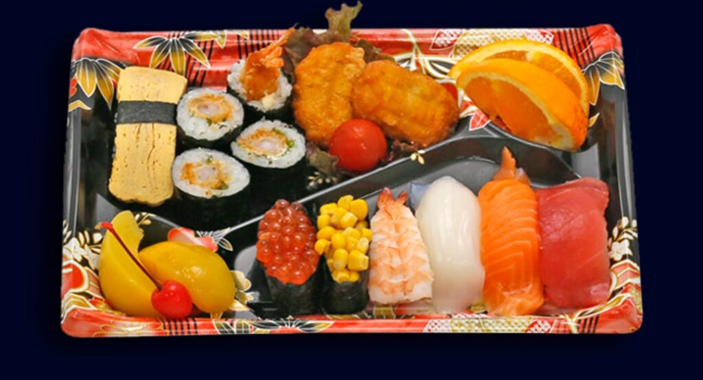 | 華澄(かすみ) キハダマグロ/ヤリイカ/エビ/イクラ/玉子 サーモン/コーン/エビフライ巻/チキンナゲット/フルーツ | 1人前 1,350円 |